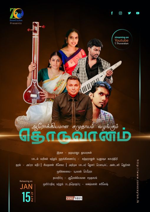 ஆரோக்கியமான சமுதாயம் மிகவும் பெருமையுடன் வழங்கும் "தொடுவானம்" இசை- தருமராஜா துவாரகன் பாடல் வரிகள் மற்றும் ஒருங்கிணைப்பு- சுந்தரராஜன் டினுஷா காயத்திரி குரல் *அப்ரா லதீப் *சிவதாசன் சினேகா *அறிமுக பாடகர்-ஜோசப் பெனடிக்ட் அன்டனி ஜெரிசன் ஒலிக்கலவை- டிலான் பெரேரா(Next Generation Music Studio) தயாரிப்பு-ஆரோக்கியமான சமுதாயம்( Healthier Society) ஒளிப்பதிவு மற்றும் படத்தொகுப்பு- லக்ஷ்மனன் கபிலேஷ் ( Cinevilla photography) Healthier Society Proudly Presents "THODUVANAM" Music - T.Thuvarakan Lyrics & Co-ordination - Sunthararajan Dinusha gayathri Vocal *Afra Lateeif *Sivathasan sineka *Debut Singer-Joseph Benadict Anthony jerison Mixing and Mastering - Dilan Perera (Next Generation Music Studio) Produced by - Healthier Society ( ஆரோக்கியமான சமுதாயம்) Cinematography & Editing Luxman kabilesh (Cinevilla photography) www.zoneceylon.lk